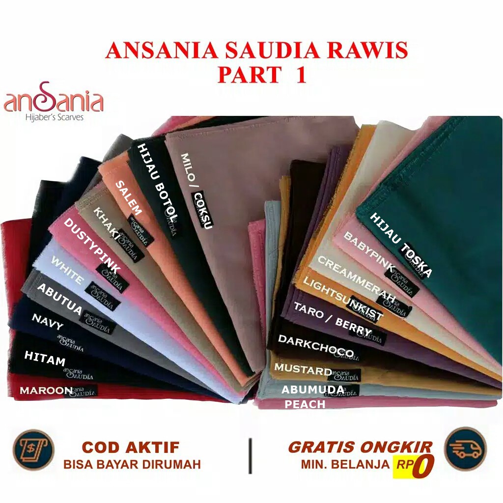 Jilbab Saudia Ansania PART1 Kerudung Katun Voal Segiempat Rawis