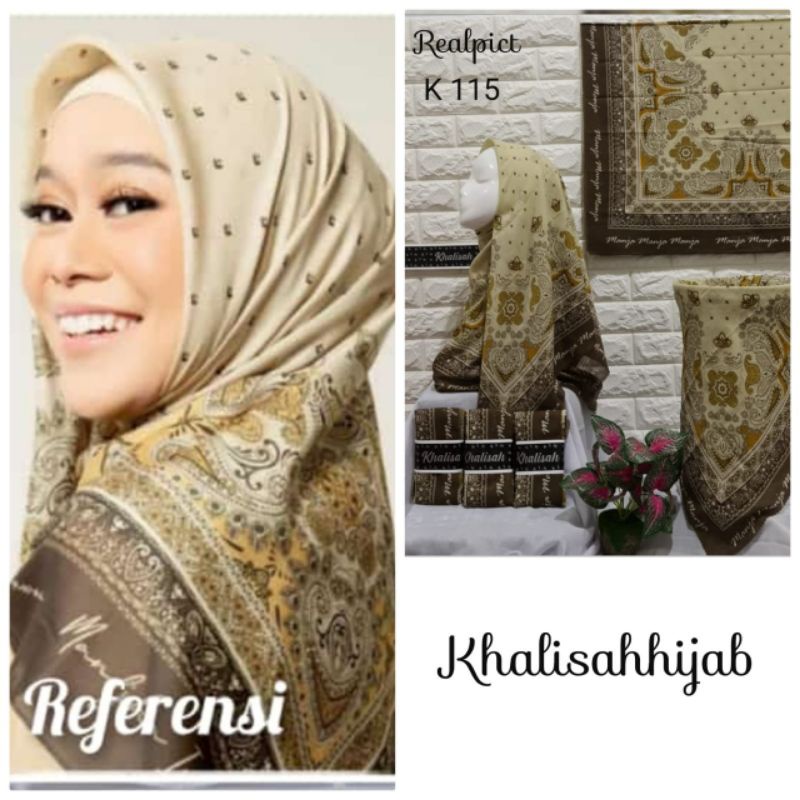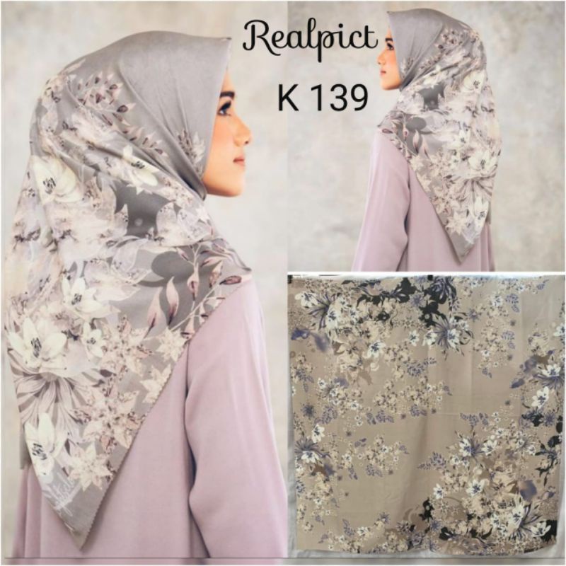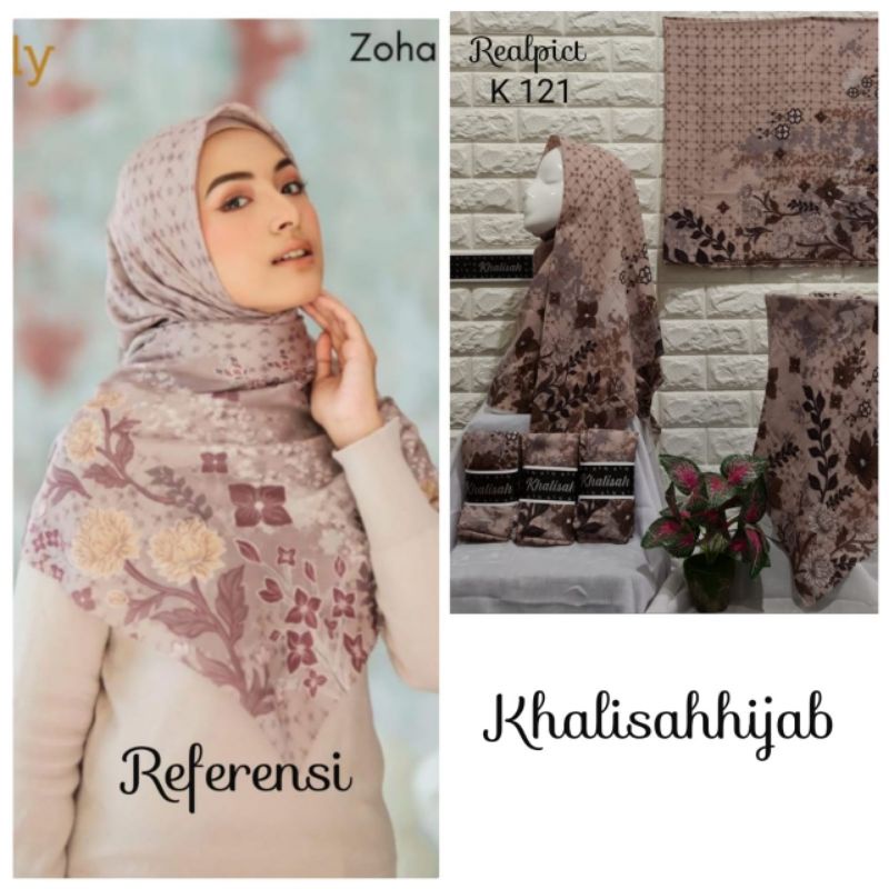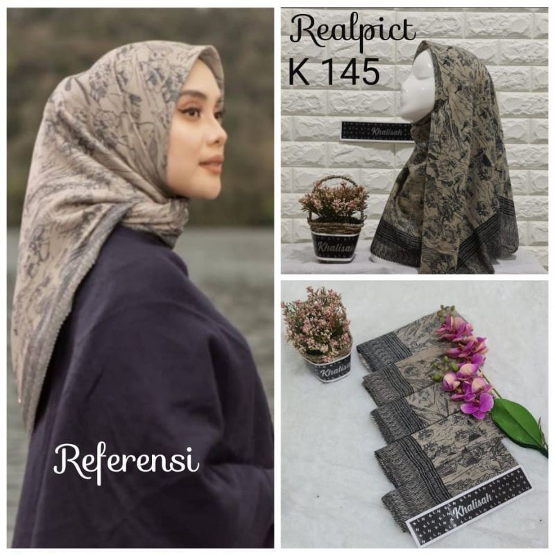 Terbaru !! Hijab Segi Empat Voal Motif Bilqis Taupe Jilbab Voal Motif art Premium