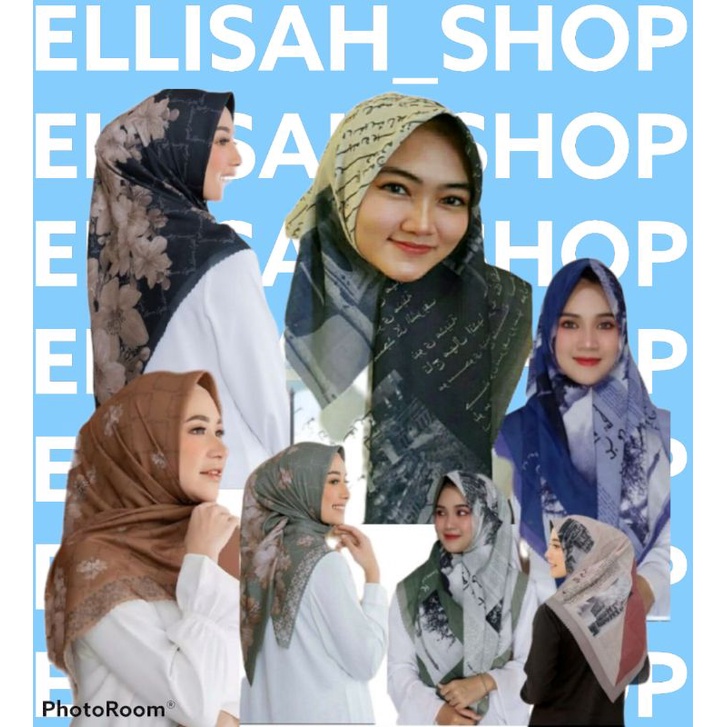 TERMURAH! 5 Pilihan ellisah Kerudung Voal motif / hijab koran Segi empat Laser Cut